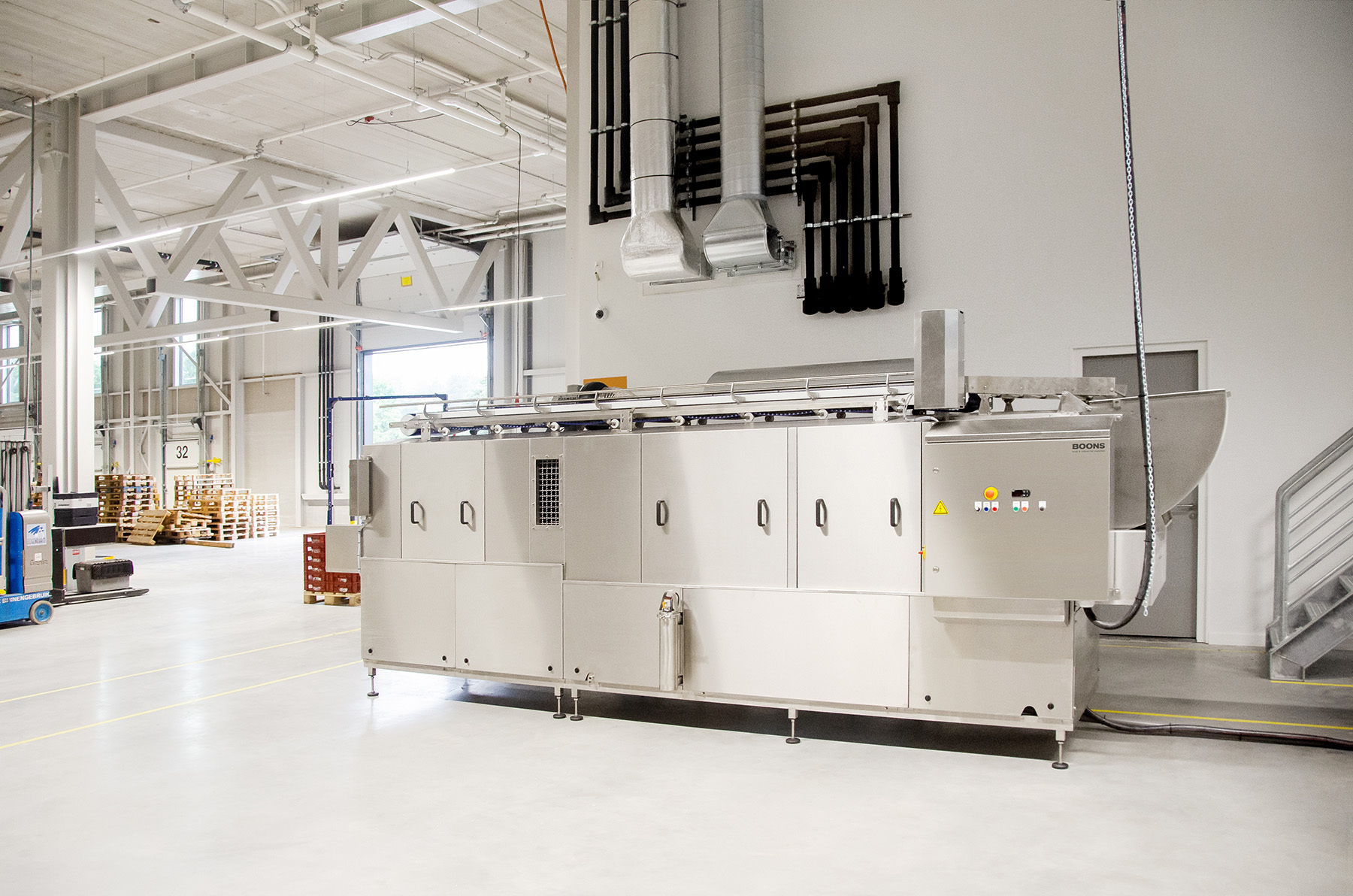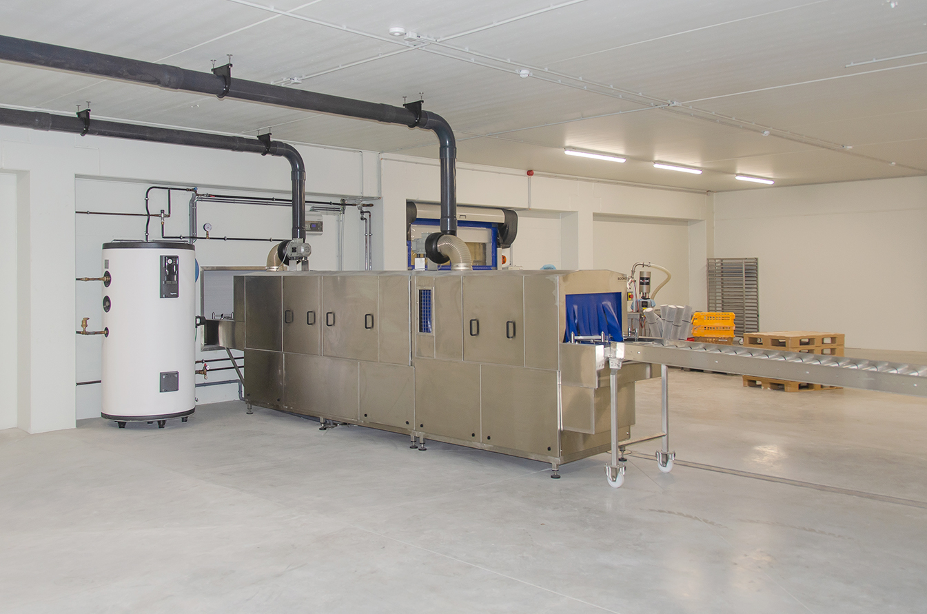 After the washing zone, the crates are rinsed at a high temperature in the rinsing zone. The used hot water is not wasted, but automatically flows to the water tank, so that this water is reused in the washing zone. Thanks to this recovery process, the water and energy consumption of these appliances is kept to a minimum. A drying zone can be provided with 1 or 2 powerful air fans.